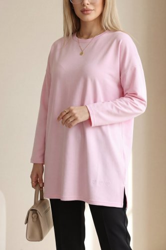 Eteği Kalp Detaylı Yırtmaçlı Salaş Penye Tunik Pembe
