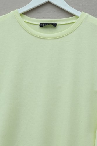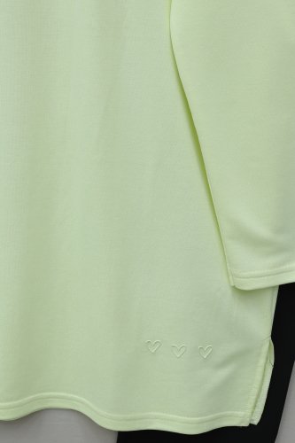 • Eteği Kalp Detaylı Yırtmaçlı Salaş Penye Tunik Açık Sarı