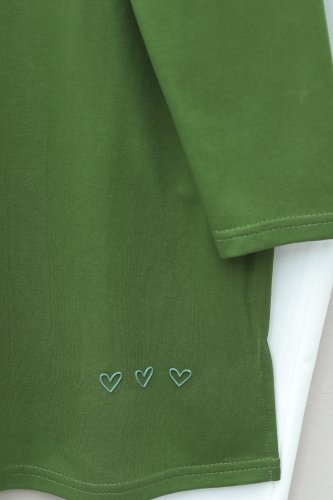 • Eteği Kalp Detaylı Yırtmaçlı Salaş Penye Tunik Haki