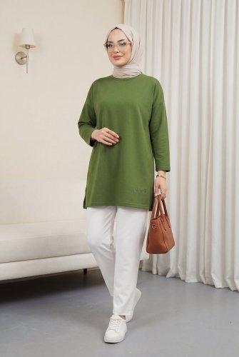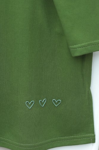 • Eteği Kalp Detaylı Yırtmaçlı Salaş Penye Tunik Yeşil