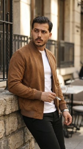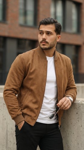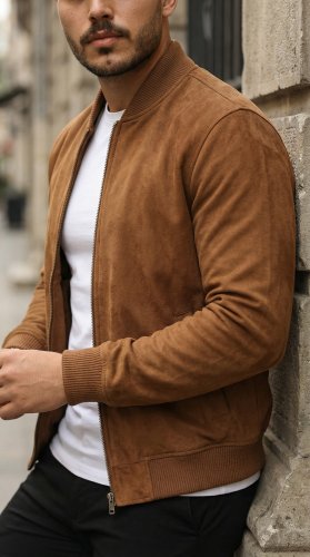 • Erkek önden fermuarlı içi astarlı süet ceket