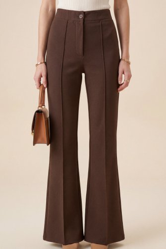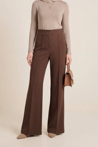 • Düğmeli Beli Lastikli Likralı Palazzo Pantolon K Kahve