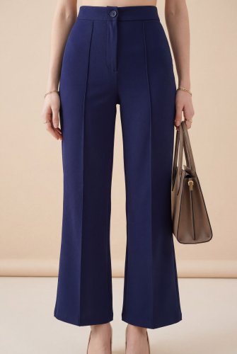 Düğmeli Beli Lastikli Likralı Palazzo Pantolon Siyah